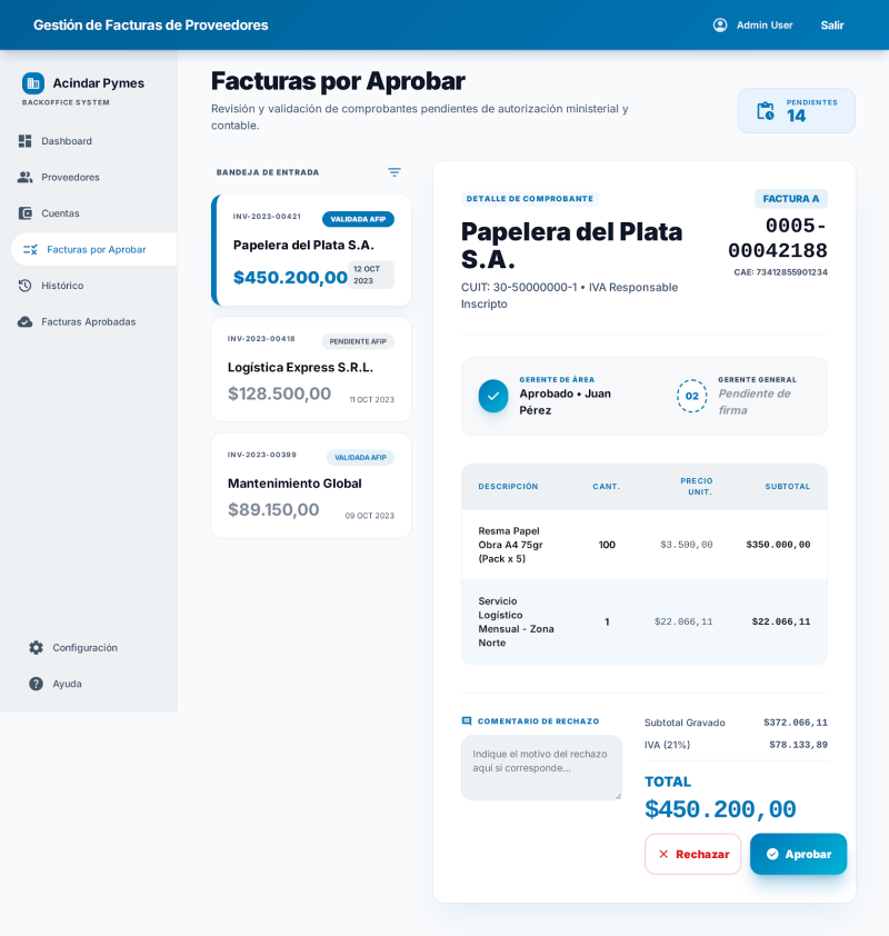 La herramienta centraliza la recepción, validación y aprobación de comprobantes, creando un flujo de trabajo más ágil y seguro.
